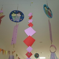 7月7日は七夕の日。6月に入るとすぐ七夕に向けた創作活動を実施しました。 画用紙にマジックやくれよんなどで彦星・織姫の顔を描き、いろんな柄の折り紙の着物から好きなものを選んで...詳細を見る